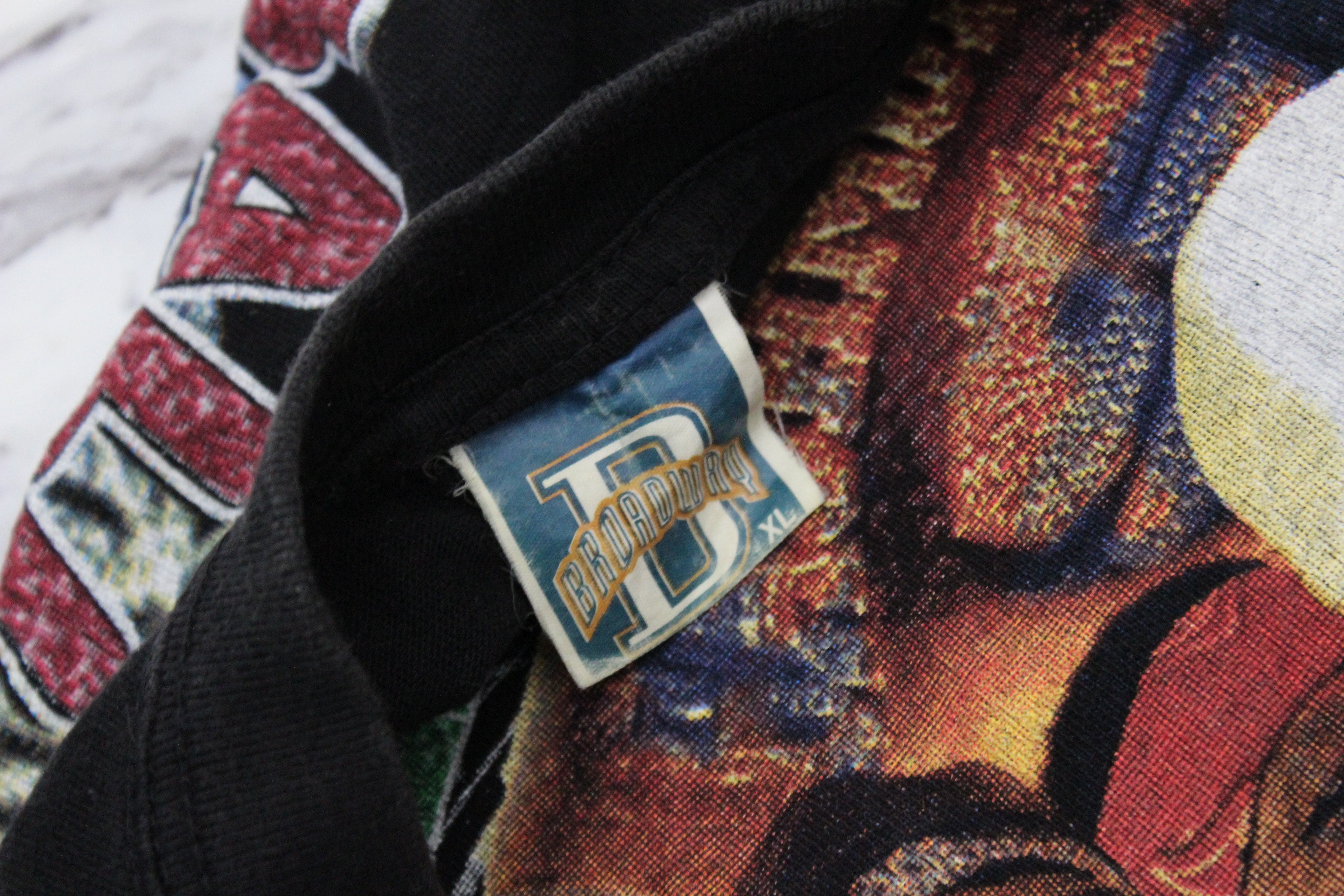 This tee is in good vintage condition. It has fading throughout with slight cracking on the print. No rips, holes or stains found on this one.