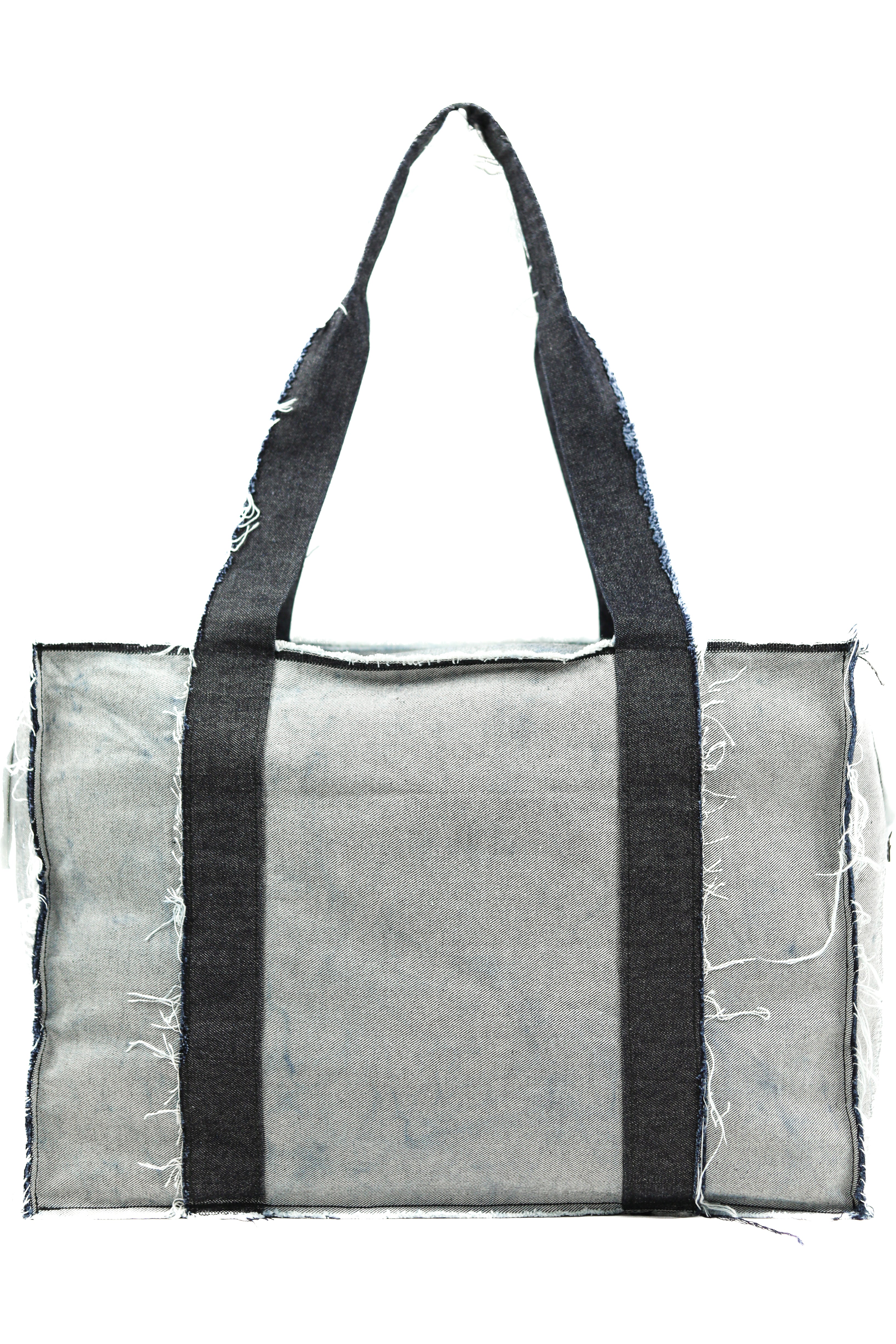 -Each tote is treated after construction to reduce bleeding and encourage natural fraying, giving every bag a unique fade and indigo bleed over time