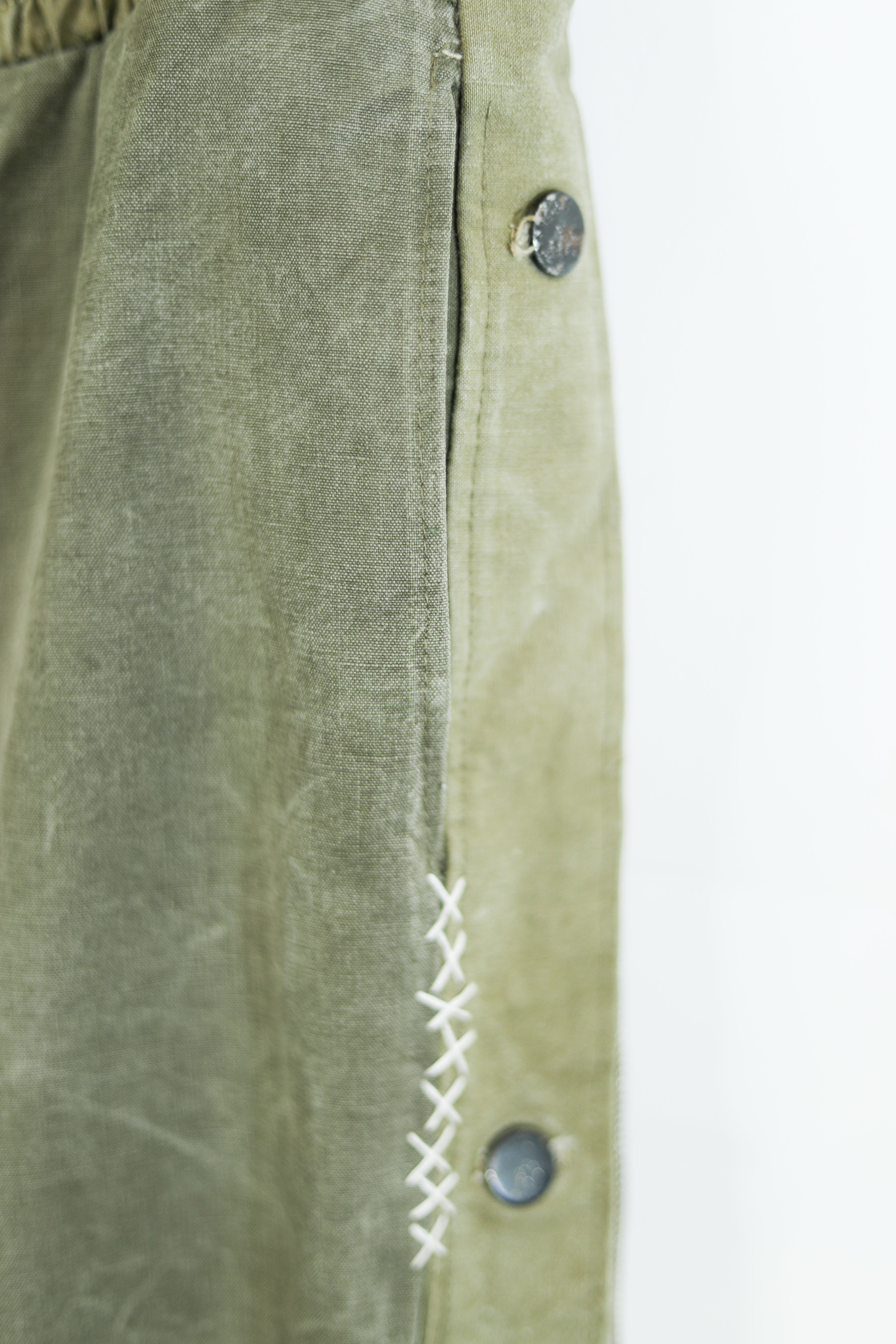 -Made with vintage military fabrics, which means each pair will have its own unique fading and distressing
